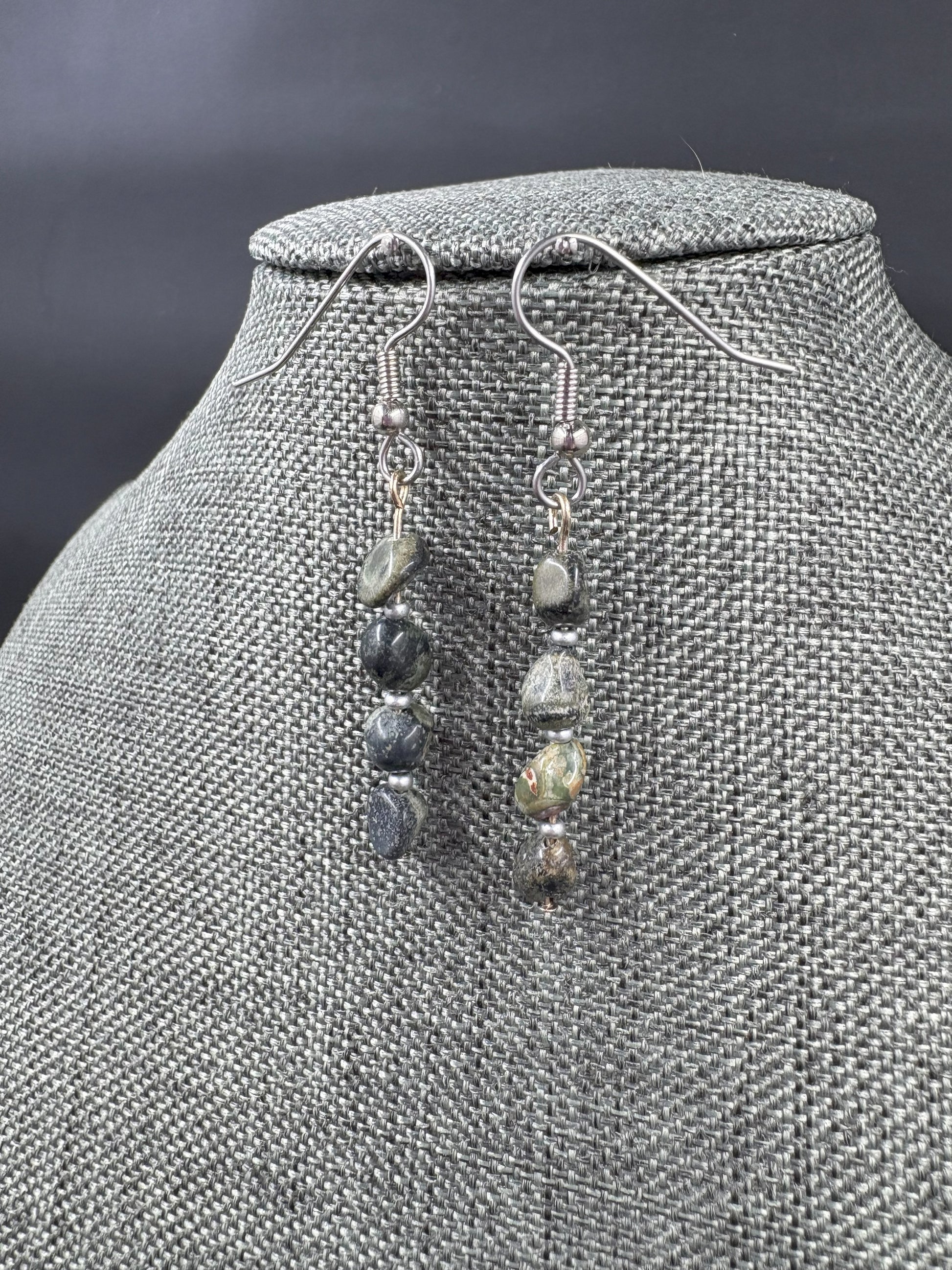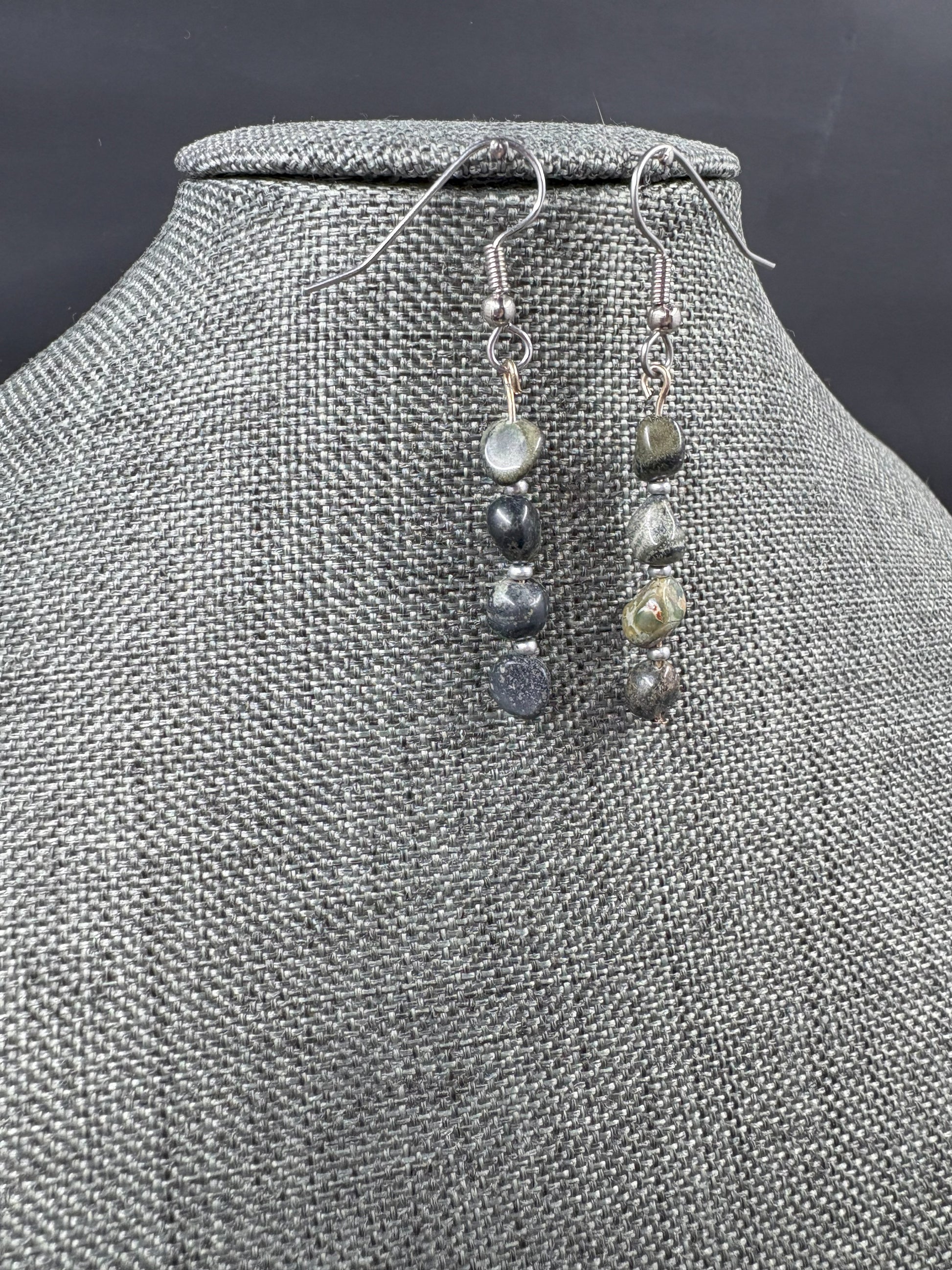 Dark Green Strand Silver Earrings
